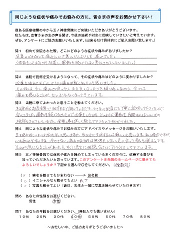 A.治療を継続して受けることにより、症状や痛みが徐々に軽減されていくのが実感できている。