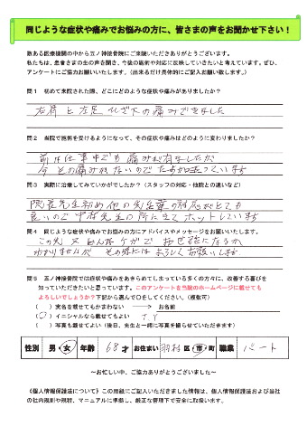 A.前は仕事中でも痛みが有りましたが、今その痛みがないのでたすかっています。
